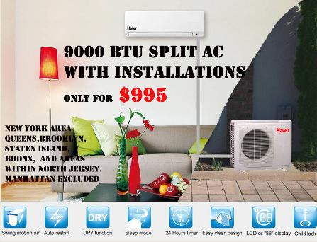 installation of a 9,000BTU unit for $995 (a $1500 value).